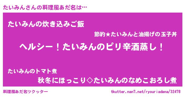 | 意味不明あだ名 | 『自称たいみん』『ペロリンたいみん』 |