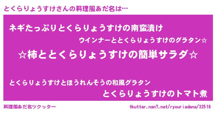 | 男性向けラノベタイトル風あだ名 | 『緋弾のトクラリョウスケ』 |