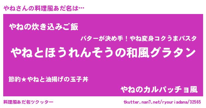 | ヘコむあだ名 | 『やねもー』『やね(遠い目)』『豆乳』 |