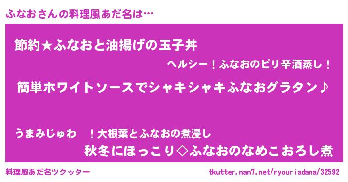 | ヒーロー風カッコイイあだ名 | 『炎刃騎士フナ』『スーパーフナオ』 |