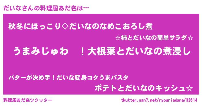 | ヘコむあだ名 | 『酢こんぶ』『だいぷりん』 |