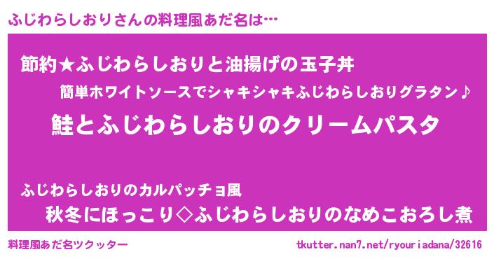 | 男性向けラノベタイトル風あだ名 | 『ノーゲーム・ノーフジワラシオリ』 |