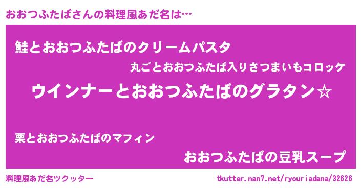 | 男性向けラノベタイトル風あだ名 | 『やはりおおつふたばの青春ラブコメはまちがっている 』 |
