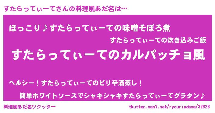 | 意味不明あだ名 | 『住所不定無職すたらってぃーて(84歳)』 |