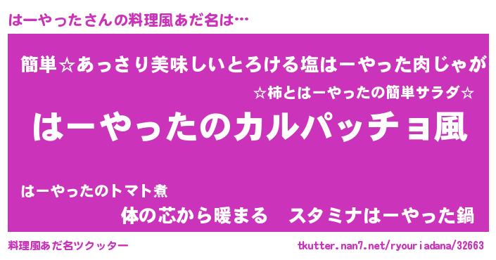 | 意味不明あだ名 | 『住所不定無職はーやった(79歳)』 |
