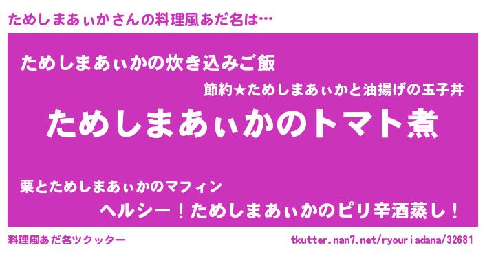 | 女子向けラノベタイトル風あだ名 | 『ためしまあぃか夫妻のなれそめ』 |
