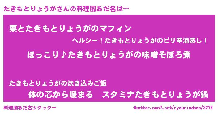 | 胡散臭い通販商品みたいなあだ名 | 『必ず成功するブレスレット…その名も「たきもとりょうが」』 |