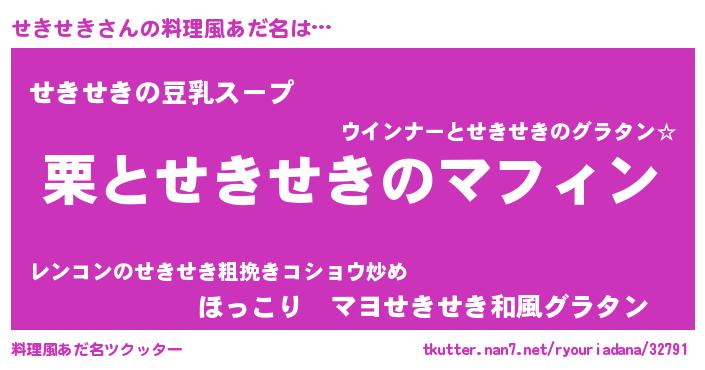 | 意味不明あだ名 | 『とにかく怪しいせきせき』 |