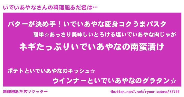 | 胡散臭い通販商品みたいなあだ名 | 『億万長者になれるブレスレット…その名も「いでいあやな」』 |