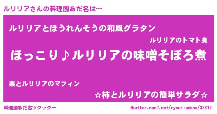 | ヘコむあだ名 | 『ルリふぇ~』『牛乳』『ルリお』 |