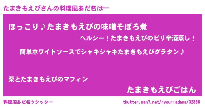 | 男性向けラノベタイトル風あだ名 | 『たまきもえびの嫁は女の子じゃないと思った?』 |