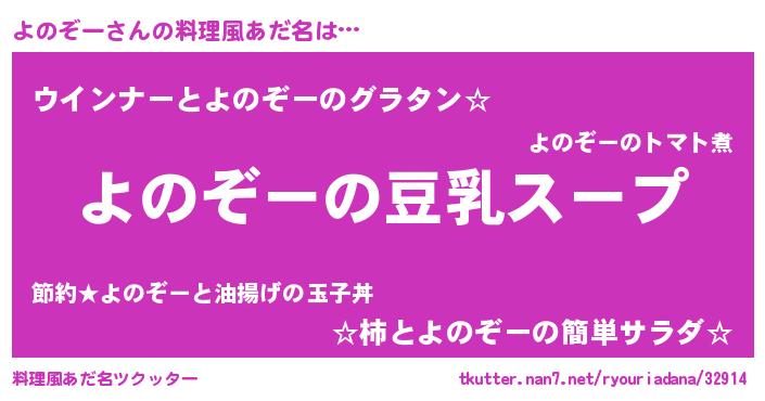 | ポケモン風あだ名 | 『ヒヨノゾー』『ヨノゾダネ』 |