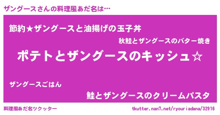 | 女子向けラノベタイトル風あだ名 | 『ザングースの卵を拾いまして』 |