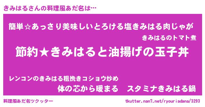 | 胡散臭い通販商品みたいなあだ名 | 『モテモテ間違いなし霊験あらたかなお札…その名も「きみはる」』 |