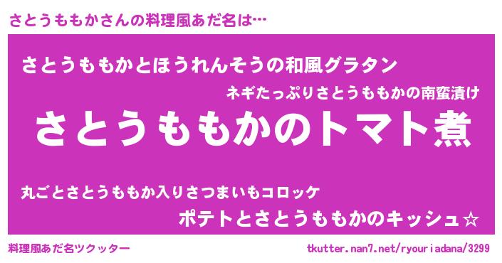 | 男性向けラノベタイトル風あだ名 | 『おまえをオタクにしてやるから、俺をさとうももかにしてくれ! 』 |