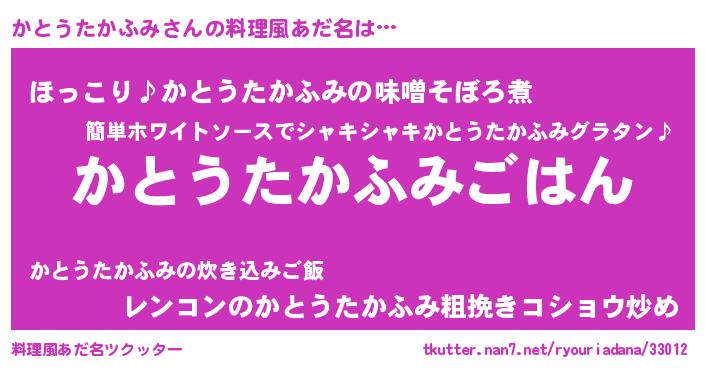 | 意味不明あだ名 | 『めかぶ科かとうたかふみ属』 |