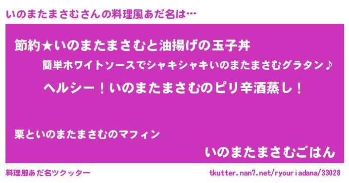 | 男性向けラノベタイトル風あだ名 | 『Re:いのまたまさむから始める異世界生活』 |
