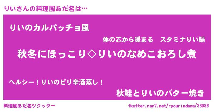 ヘコむあだ名 | 『りい(遠い目)』『つくし』『りいを』 |