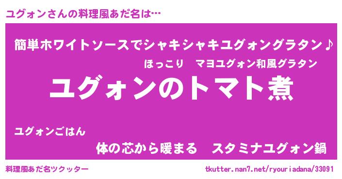 | 男性向けラノベタイトル風あだ名 | 『おまえをオタクにしてやるから、俺をユグォンにしてくれ! 』 |