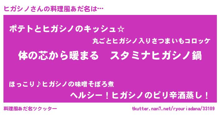 | ファンタジー風あだ名 | 『エターナルヒガシノー』『ゼヒガトゥ』 |