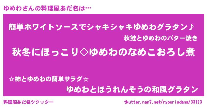 | 男性向けラノベタイトル風あだ名 | 『ゆめわに滅ぼされるだけの簡単なお仕事です』 |