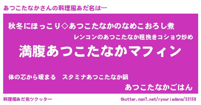| 男性向けラノベタイトル風あだ名 | 『あつこたなかという概念が存在しない退屈な世界 』 |
