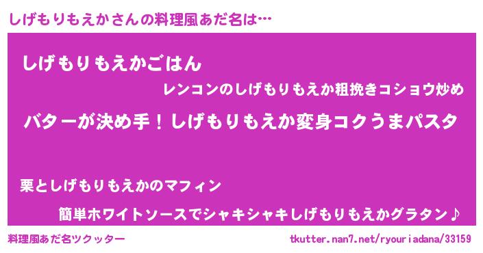 | 女子向けラノベタイトル風あだ名 | 『しげもりもえか恋絵巻』 |