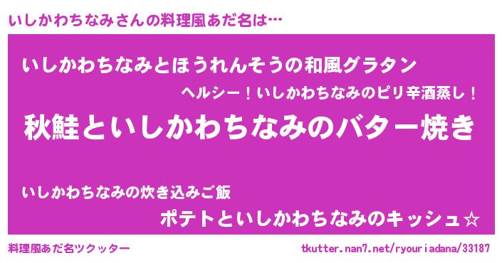 | ヘコむあだ名 | 『いしかわちなみ(苦笑)』『いしぷりん』 |