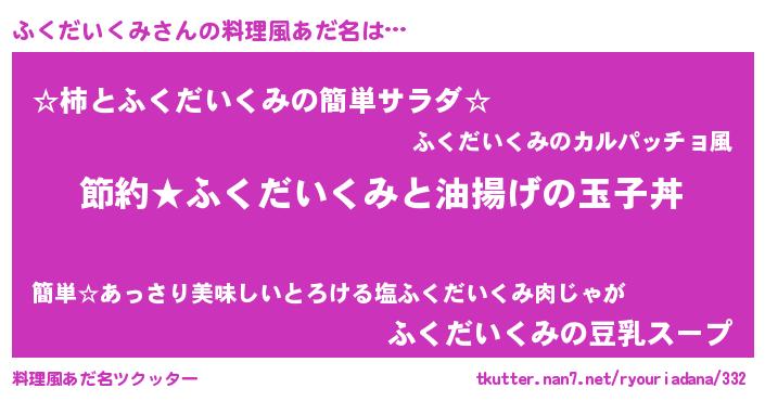 | ヘコむあだ名 | 『ふくにー』『ふくお』『酢こんぶ』 |