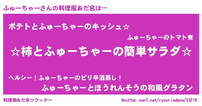 | 胡散臭い通販商品みたいなあだ名 | 『信頼と実績のサプリメント…その名も「ふゅーちゃー」』 |
