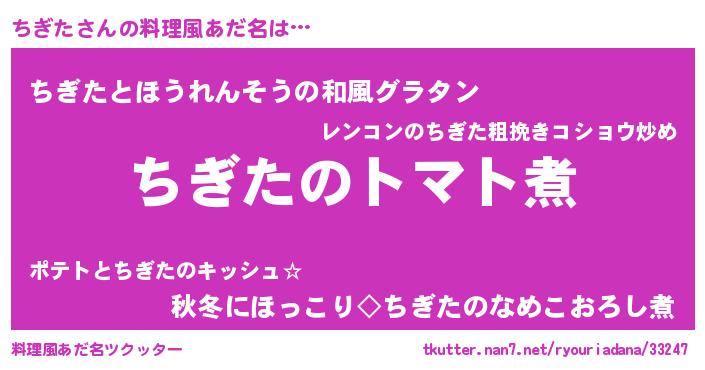 | ヒーロー風カッコイイあだ名 | 『正義の使者ちぎた』『最強戦士チギタ』 |