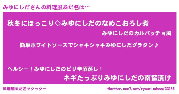 | 男性向けラノベタイトル風あだ名 | 『みゆにしだの嫁は女の子じゃないと思った?』 |