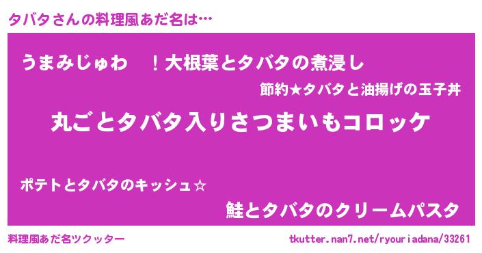 | 男性向けラノベタイトル風あだ名 | 『この素晴らしい世界にタバタを!』 |