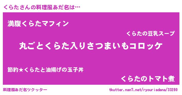 | 男性向けラノベタイトル風あだ名 | 『魔弾の王とくらた』 |