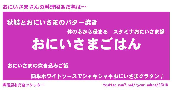 | 胡散臭い通販商品みたいなあだ名 | 『来世でも幸せになれる水素水…その名も「おにいさま」』 |