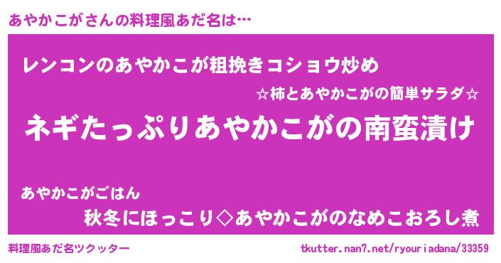| 男性向けラノベタイトル風あだ名 | 『アヤカコガアートオンライン』 |
