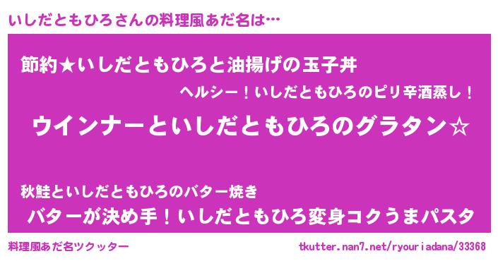 | 男性向けラノベタイトル風あだ名 | 『やはりいしだともひろの青春ラブコメはまちがっている 』 |