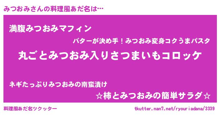 | ヘコむあだ名 | 『みつおみ(笑)』『みつにー』 |