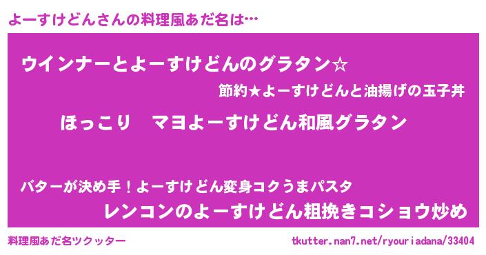 | 男性向けラノベタイトル風あだ名 | 『この素晴らしい世界によーすけどんを!』 |