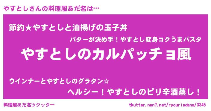 | 意味不明あだ名 | 『住所不定無職やすとし(74歳)』 |