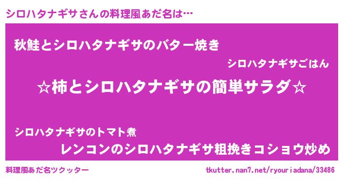 | 欧米人風あだ名 | 『シロハタナギサ・ステッグマイヤー』 |