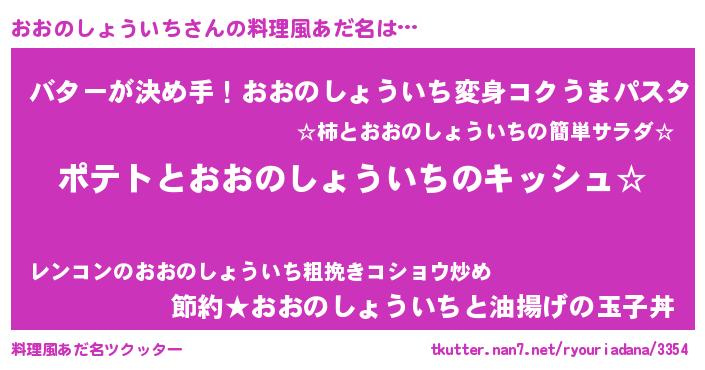 | 女子向けラノベタイトル風あだ名 | 『おおのしょういちの卵を拾いまして』 |