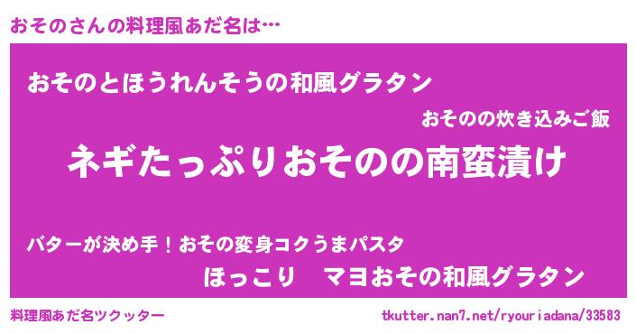 | 胡散臭い通販商品みたいなあだ名 | 『億万長者になれるブレスレット…その名も「おその」』 |
