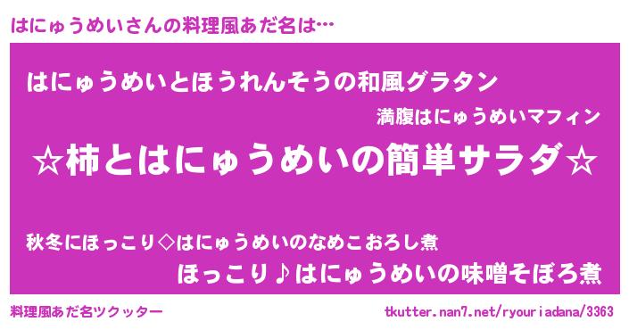 | ヘコむあだ名 | 『はににー』『はにゅうめい(小並感)』 |