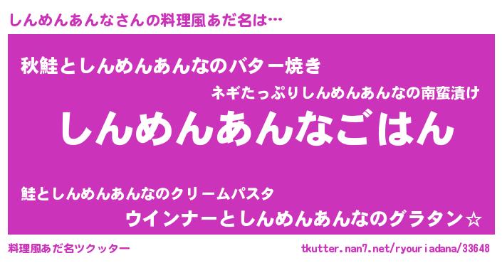 | 男性向けラノベタイトル風あだ名 | 『シンメンアンナスレイヤー』 |