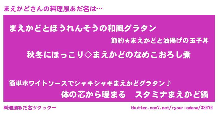 | 男性向けラノベタイトル風あだ名 | 『まえかどに滅ぼされるだけの簡単なお仕事です』 |