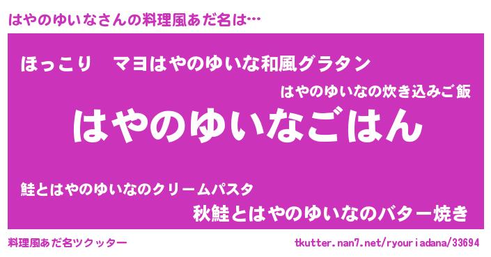 | ヘコむあだ名 | 『はやのゆいな(苦笑)』『はやっぺ』 |