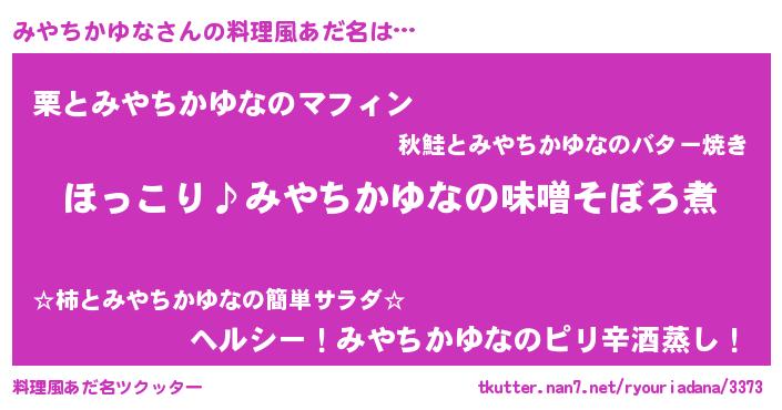 | 男性向けラノベタイトル風あだ名 | 『みやちかゆなの憂鬱』 |