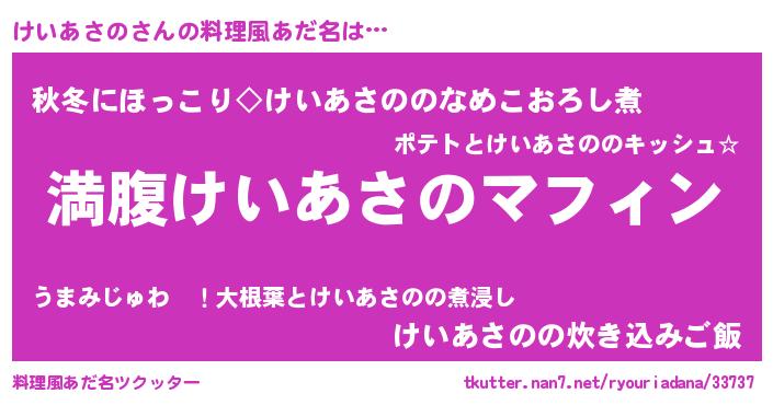 | 意味不明あだ名 | 『永久保存けいあさの』『自称けいあさの』 |