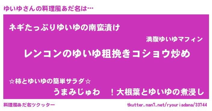 | 恥ずかしいあだ名 | 『ユイユデラックス』『プリティーゆいゆ』 |